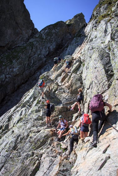 2 - 6 diena. Keliausime vaizdingais kalnų maršrutais pačioje Aukštųjų Tatrų širdyje, įveiksime ne vieną kalnų perėją ir pasieksime bent vieną aukštesnę viršūnę, 5 žygio dienos, 4 nakvynės kalnų chatose, paskutinė nakvynė 4 žvaigždučių kalnų viešbutyje su spa.