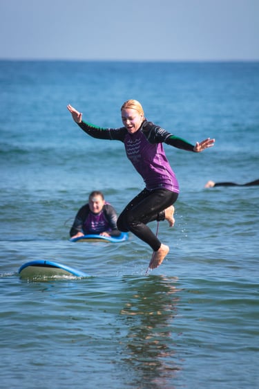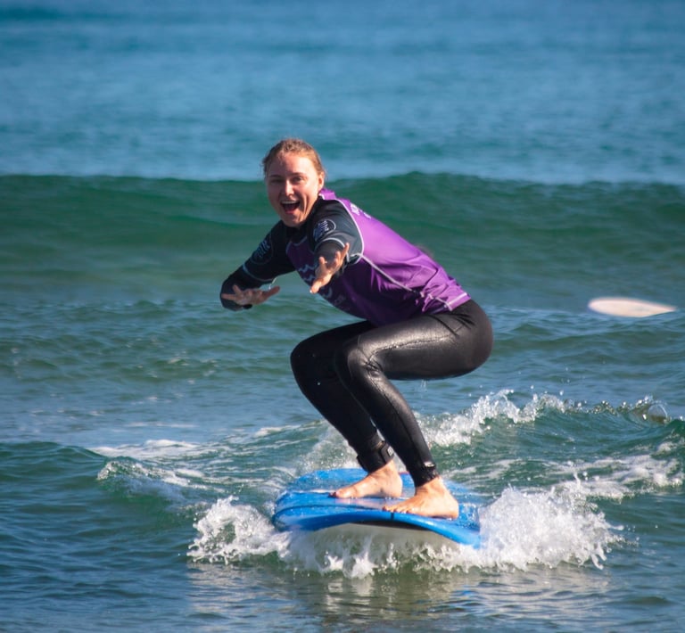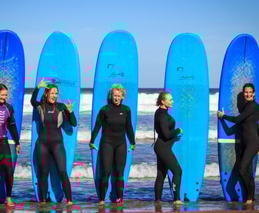 4 surfinimo pamokos po 1,5 val su profesionaliais instruktoriais iš Ispanijos.